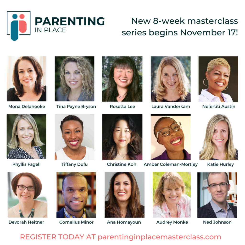 Parenting in Place 8-Week Masterclass Series (beginning Nov 17): Are you burned out, concerned about your child’s well-being and wondering how your family will manage during the holiday and flu seasons? There’s a SPECIAL LIVE MASTERCLASS SERIES designed to help you this fall: Parenting in Place: Helping Families Thrive in Challenging Times, featuring 8 live, interactive, weekly masterclasses with parenting experts including Tina Payne Bryson, Mona Delahooke, Tiffany Dufu, Devorah Heitner, Rosetta Lee, Cornelius Minor, Laura Vanderkam, and more. Registration for the entire series— including access to replays, a bundle of more than two dozen bonus downloadable resources from our speakers, and a closed moderated Facebook group for the event — is only $39. See the whole line up and register here: https://parentinginplacemasterclass.com/